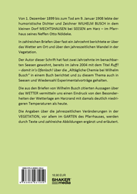 Die aus den Briefen von Wilhelm Busch zitierten Aussagen über das Wetter vermitteln uns einen Eindruck von den Besonderheiten der Wetterlage am Harzrand mit damals deutlich niedrigeren Temperaturen. Die Angaben über die jahreszeitlich Veränderungen in der Vegetation, vor allem im Garten des Pfarrhauses, werden durch Texte und zahlreiche Abbildungen ergänzt und erläutert. Grabstätte und Pfarrhaus können besucht werden.
