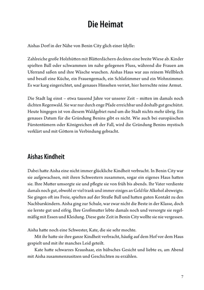 Der Roman ist psychologisch wie auch auf der Handlungsebene klar strukturiert und beschreibt die teilweise dramatischen Erlebnisse der Aisha.